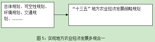 在我国的规划体系中,各职能部门都会根据情况,制定出台相关规划,因此就形成了在地方农业经济发展的过程中,相关管理规划过多的情况,再加上这些规划之间,会有衔接不当、不统一等问题,这就给整个推进“十三五”地方农业经济发展产生困惑。因此,需要以“多规合一”来带动地方农业经济发展战略的具体实施,如图5所示。